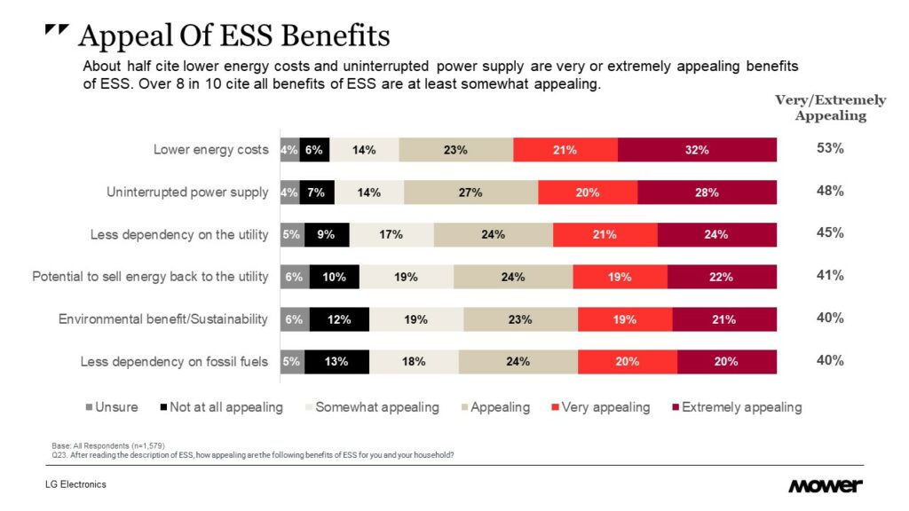 Among homeowners who already own residential solar, one quarter report already owning an ESS while eight in 10 of those who do not own one say it is a future priority. Meanwhile, 12% say it is a “number one priority.”