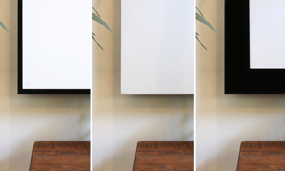 Integrators like the fact that you can choose your trim – Borderless, Thin, and Bold – and that they can easily add LED lighting to an integrated channel on the back of the frame.