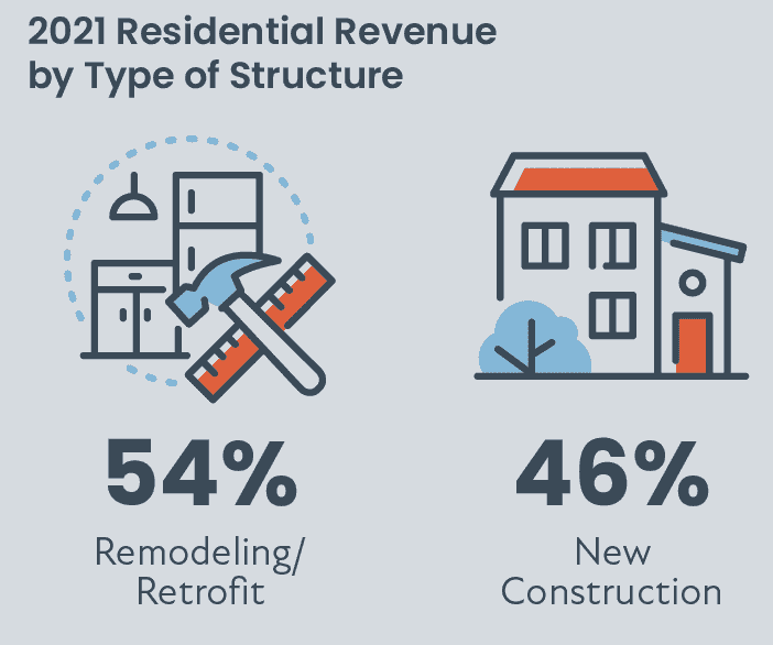 This percentage basically fl ipped in 2021 back to what it had been prior to the pandemic year of 2020. Dealers earned more from existing homes in 2021 than from new construction.