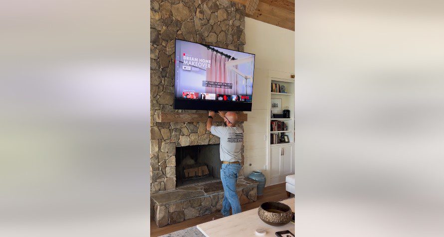 The customer for whom the installation was done had originally purchased a fixed mount a few years earlier to place her TV above their fireplace. However, the positioning of the fixed mount was too close to the mantel; consequently, the customer was unable to place any of her favorite knickknacks and personal items on display; the sound bar attached to the mount made the clearance even tighter. Taylor thought he had solved the problem by raising the fixed mount, but after about a year of watching a television that was mounted far too high for comfortable viewing (eye level is ideal, and this was far from that), the customer again turned to Taylor for a more permanent remedy.