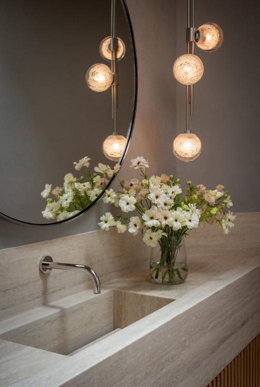 Electricians worked closely with the integration team to ensure all lighting could be tied into the circadian system while bathroom contractors coordinated plumbing layouts so custom tub nozzles would not interfere with concealed Roman shades.