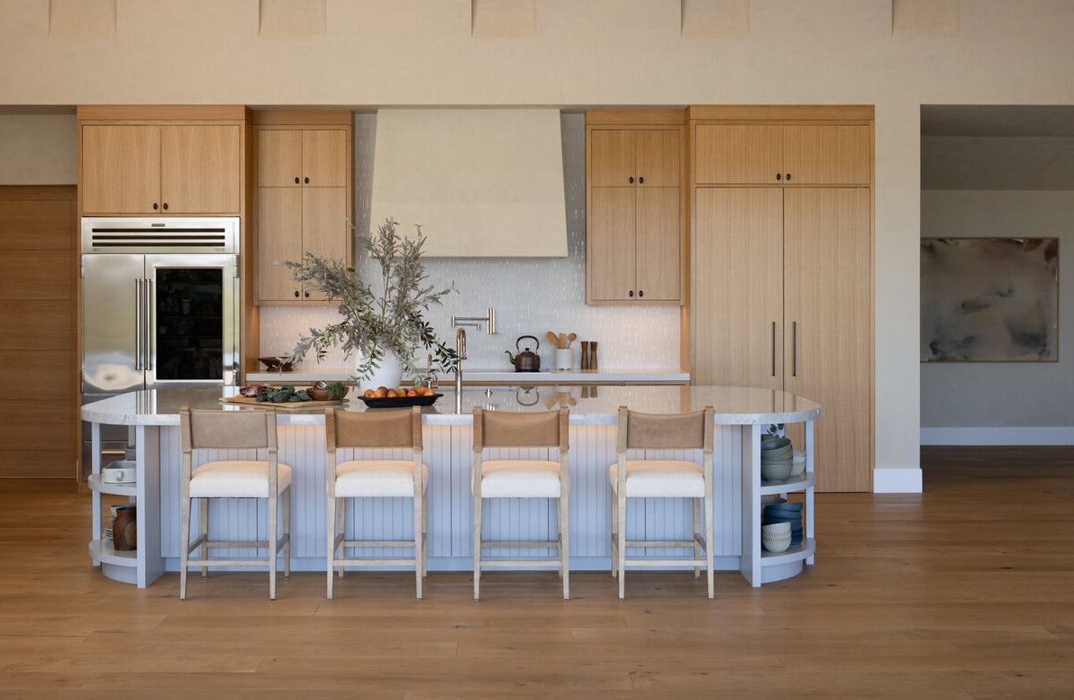 Lighting was treated as a foundational wellness element throughout the project. A fully integrated circadian lighting system spans the entire home, down to the smallest under-cabinet LED tape light, ensuring that every light source contributes to the overall biological rhythm of the space.