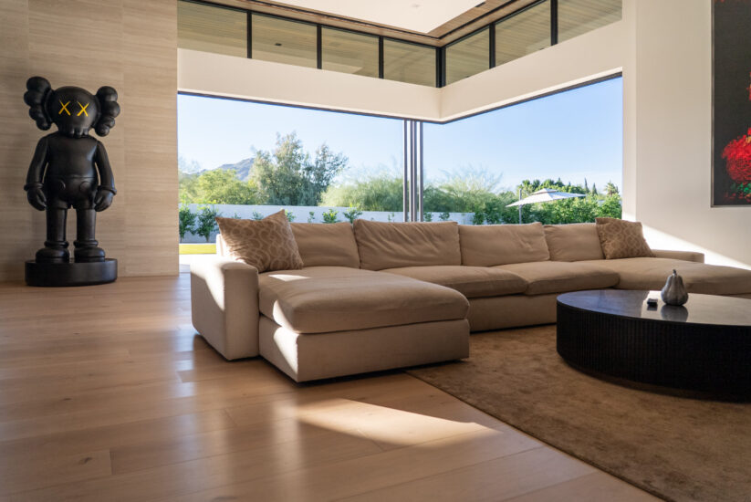 Managing Arizona’s intense sunlight and heat was another major design consideration. The home incorporates 28 Clara motorized shades integrated into the Control4 platform. The shades operate on automated schedules that track the sun’s movement throughout the day, helping reduce heat gain and maintain interior comfort.