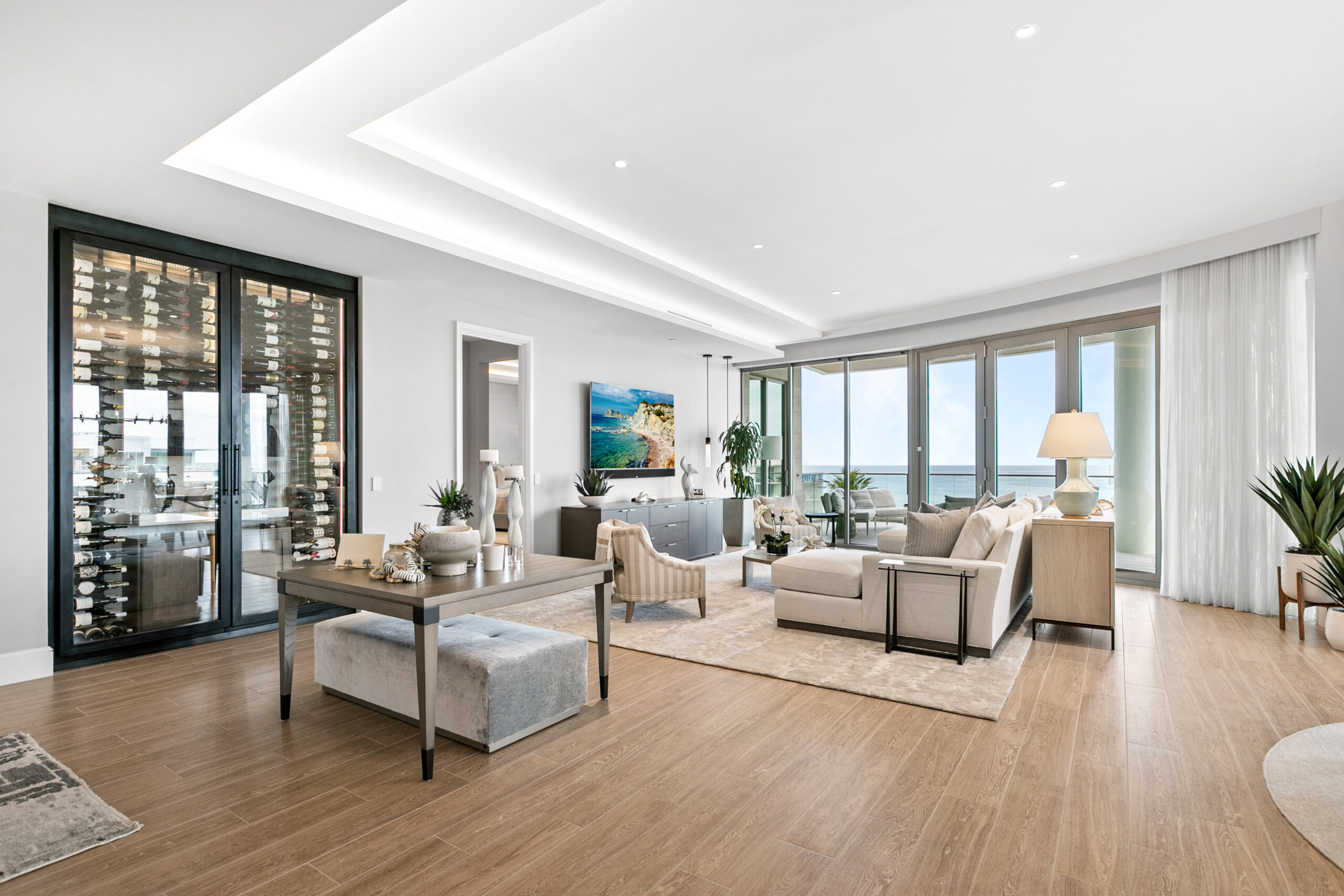 The windows themselves frame expansive Gulf of Mexico views from St. Regis with the design language of the penthouse leaning into clean lines with modern accents and very minimal wall clutter. As such, the shading automation within the penthouse is intended to serve a dual purpose: protect the interiors from harsh sunlight while maintaining unobstructed sightlines.