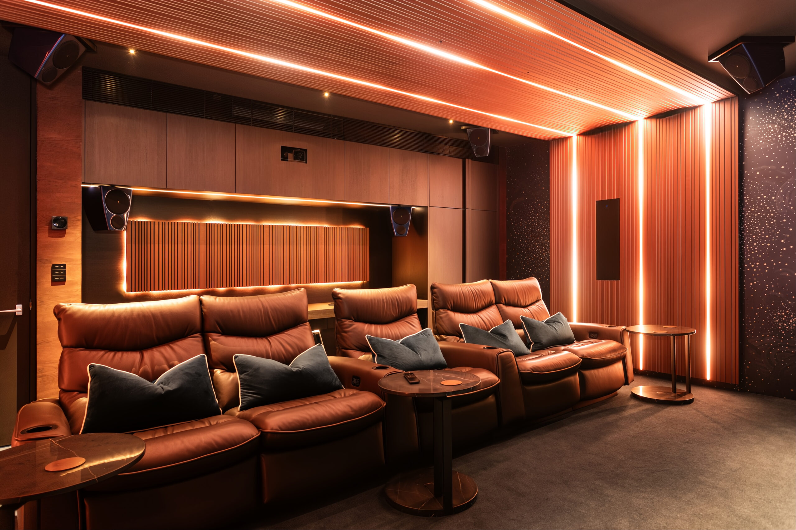 Beyond its role as a dedicated cinema, the room was designed to function as a working home office, reflecting a growing demand for flexible, multipurpose spaces.