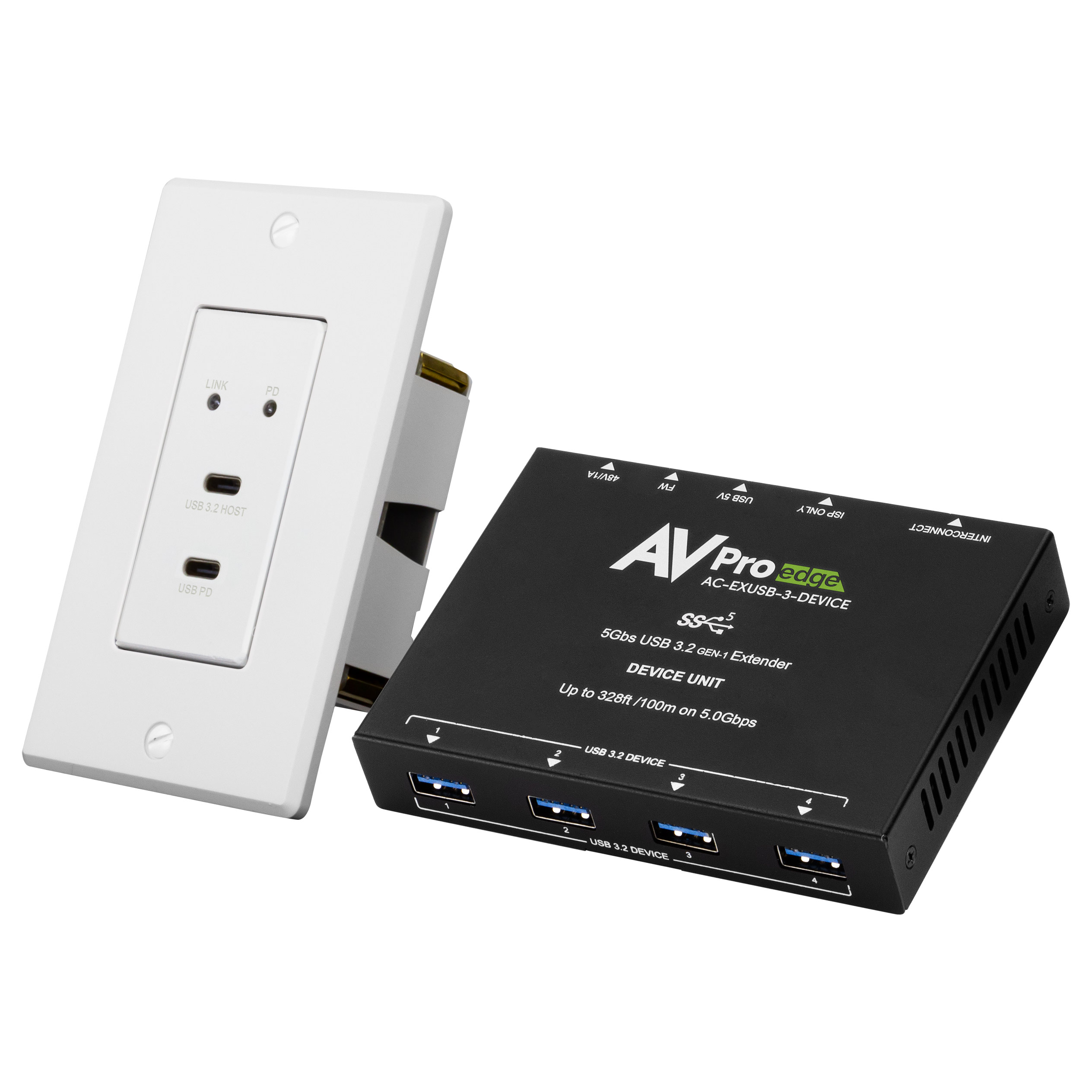 AVPro Edge introduced the AC-EXUSB-3-WP-KIT earlier this week, capable of extending USB signals over UTP category cabling up to 100 meters (328 feet), pairing with a desktop receiver to help simplify professional AV installations.